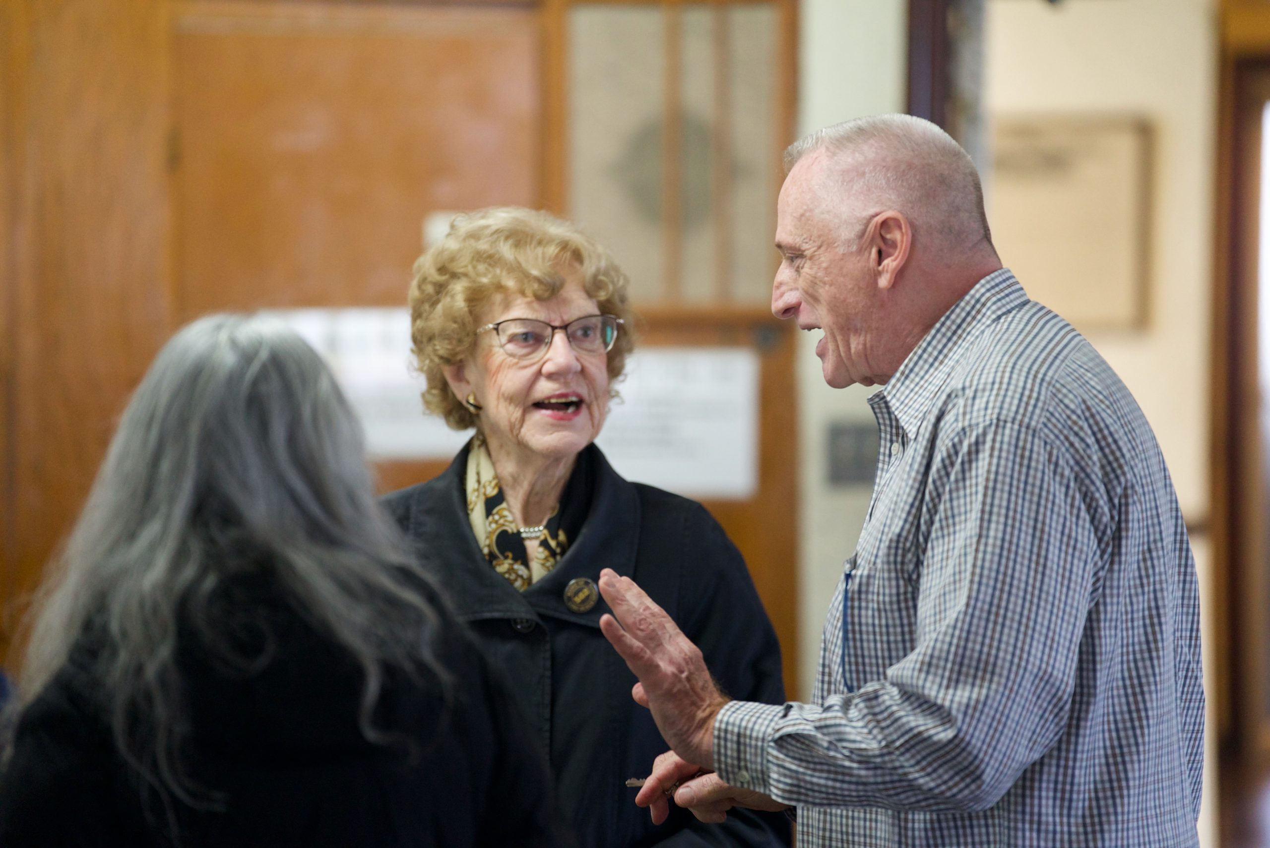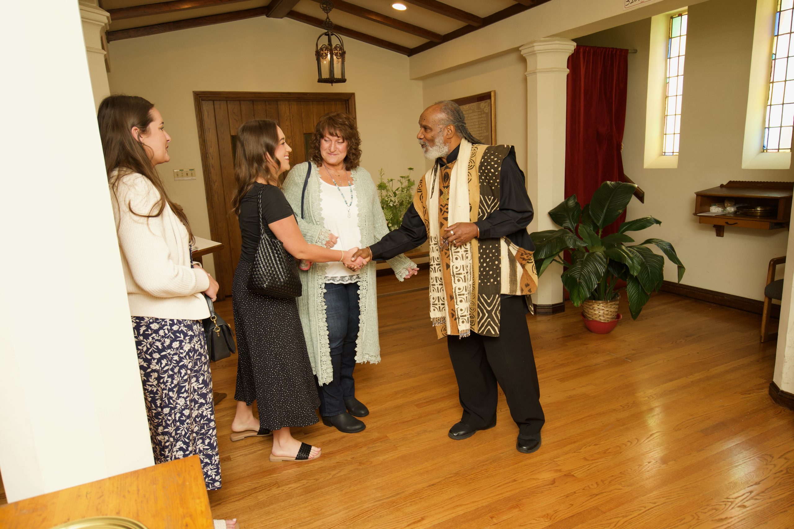 - Pastor Starr greeting Congregation members.