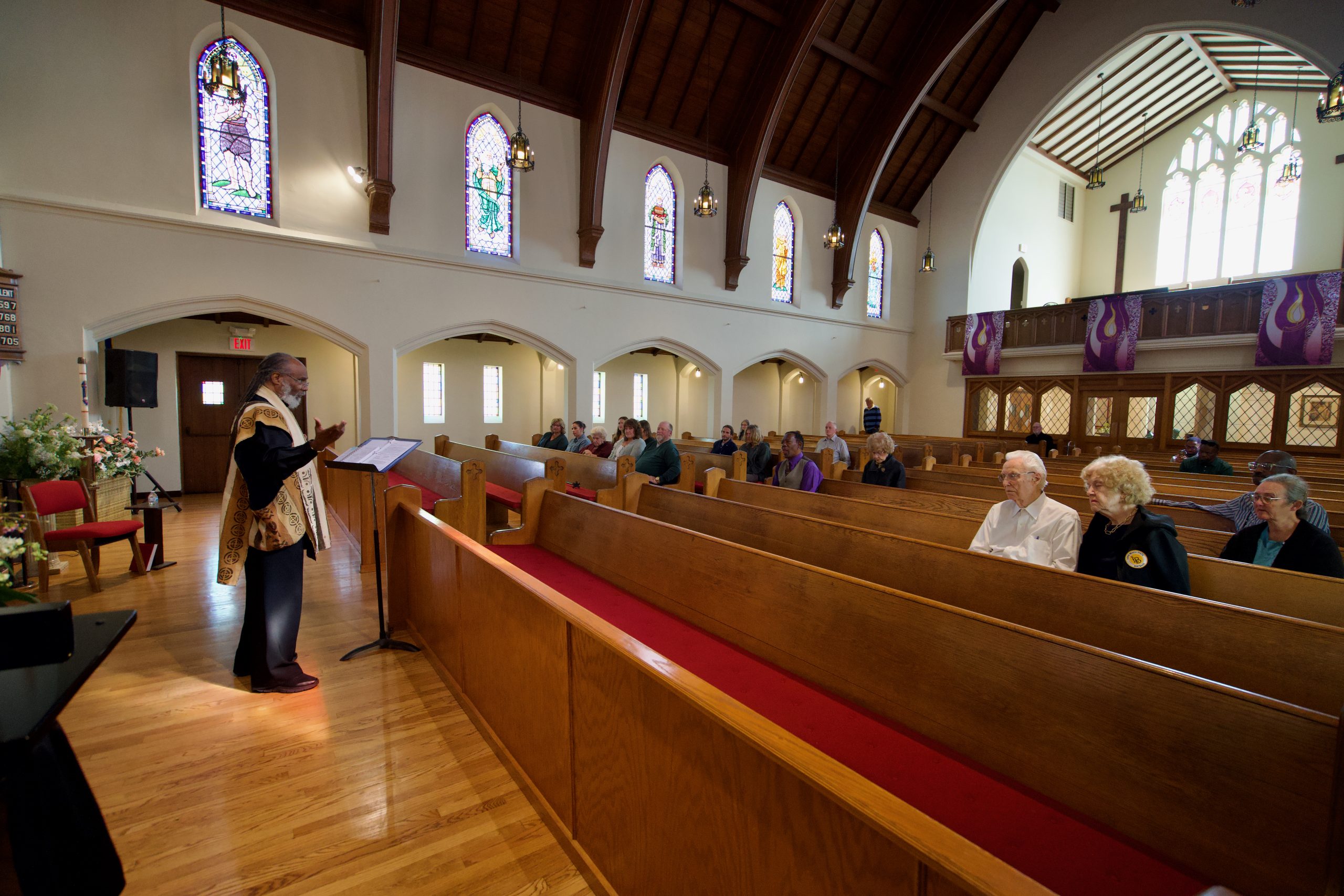 - Pastor Starr in Sanctuary during worship.